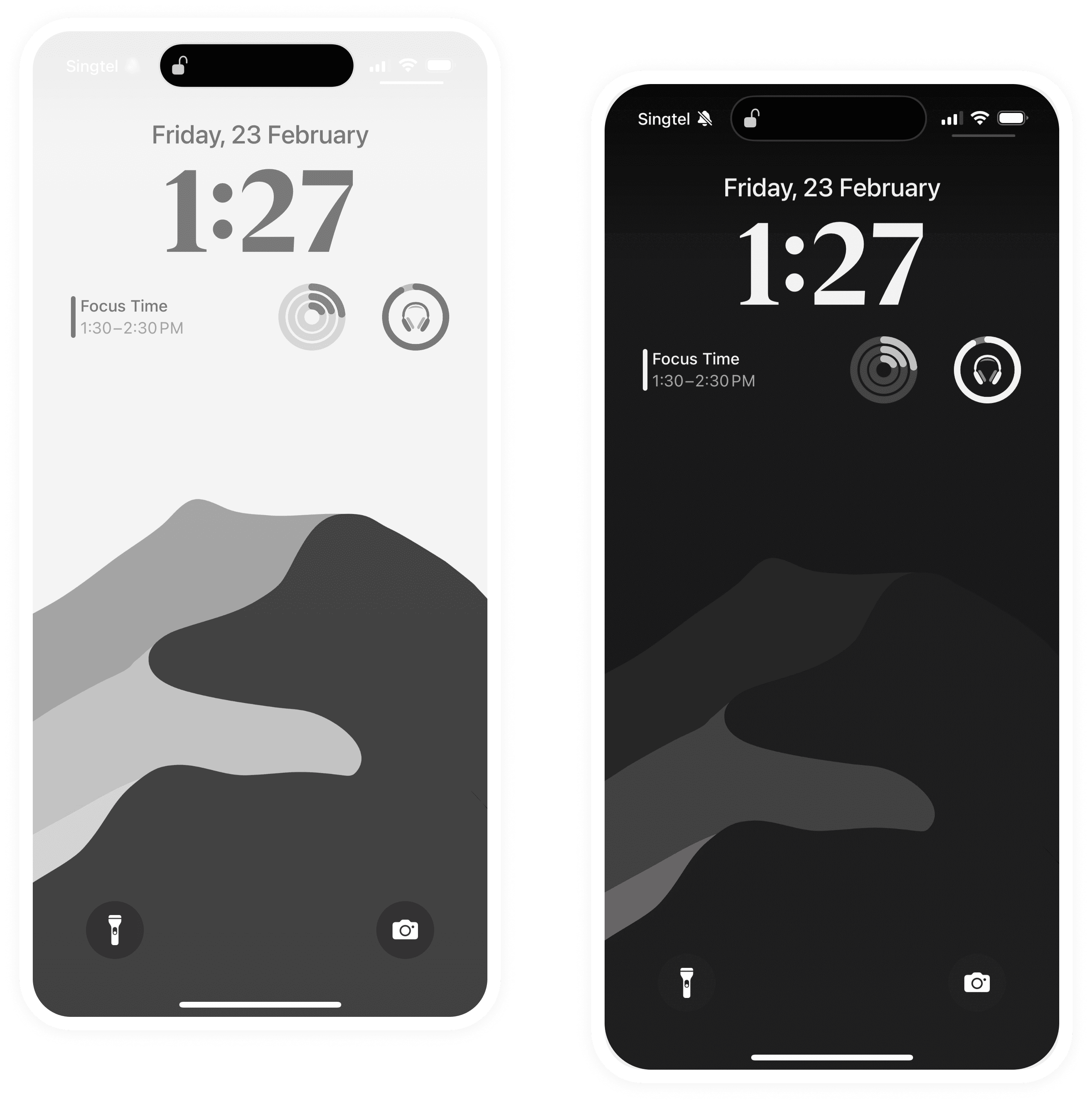 Minimal phone wallpaper in light and dark modes.